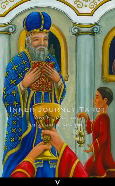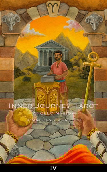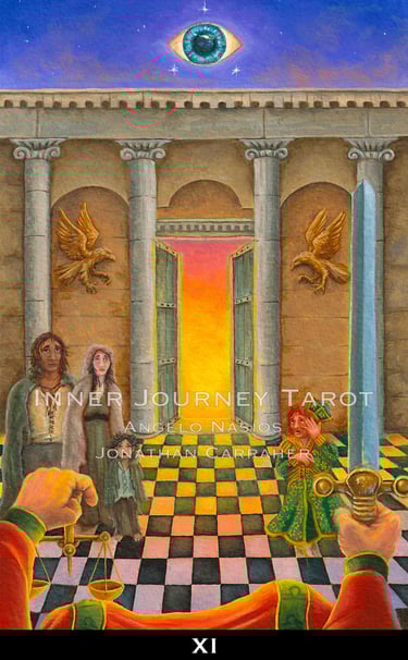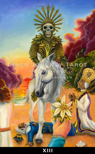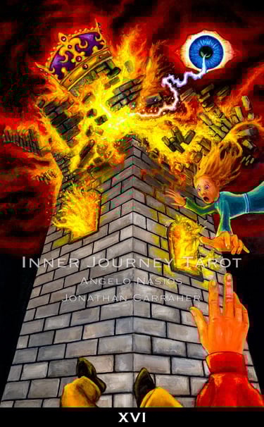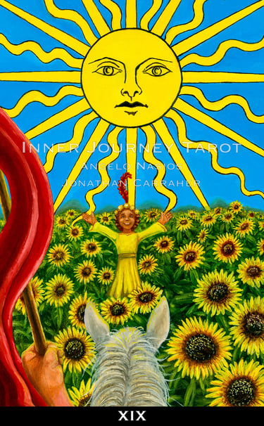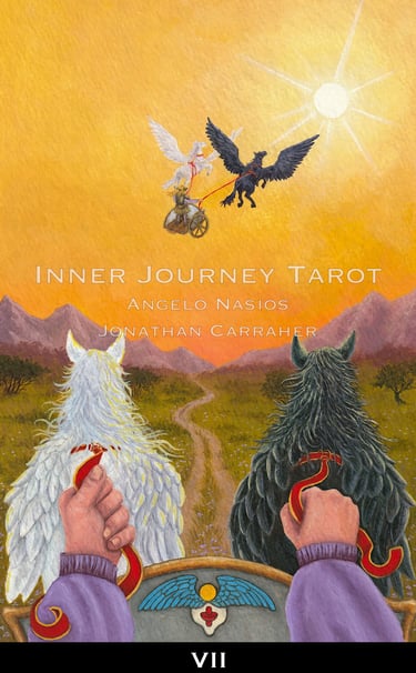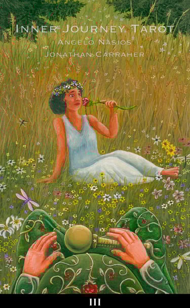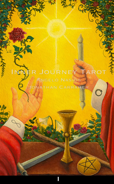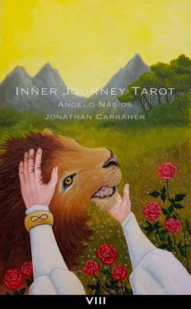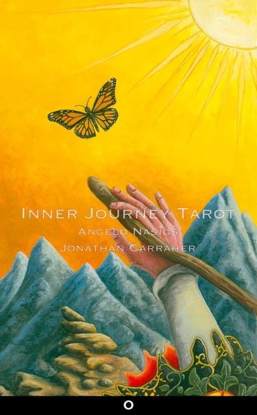 Tarot has always been seen from the third person point of view. The reader and client always standing on the outside of the images. The Inner Journey Tarot changes the game (Conceptualized by Angelo Nasios, painted by Jon Carraher.); it is a first person perspective deck.